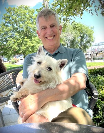 He soon was walking through crowds and even sitting on my lap at an outside café in oldtown Alexandria VA.